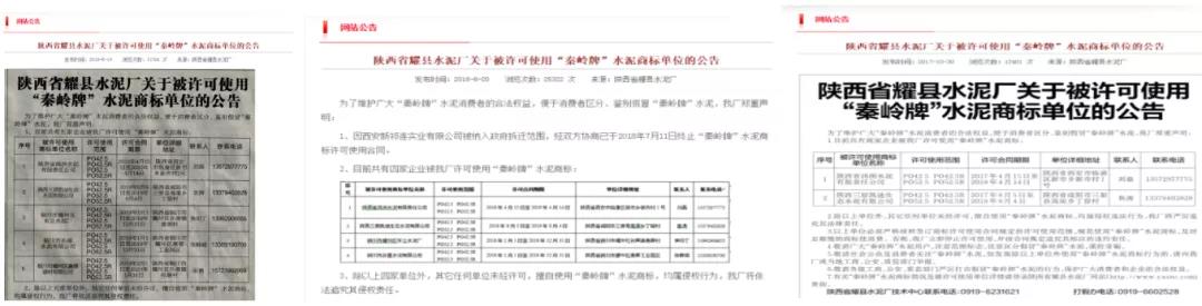 日前,陜西省耀縣水泥廠發(fā)布《關(guān)于被許可使用"秦嶺牌"水泥商標(biāo)單位的公告》稱:為了維護(hù)廣大“秦嶺牌”水泥消費(fèi)者的合法權(quán)益,便于消費(fèi)者區(qū)分、鑒別假冒“秦嶺牌”水泥。工廠鄭重聲明:目前共有七家企業(yè)被陜西省耀縣水泥廠許可使用“秦嶺牌”水泥商標(biāo)。除已授權(quán)的七家單位外,其他任何未經(jīng)許可,擅自使用“秦嶺牌”水泥商標(biāo)者,均構(gòu)成侵權(quán)行為,企業(yè)將依法追究其侵權(quán)責(zé)任。