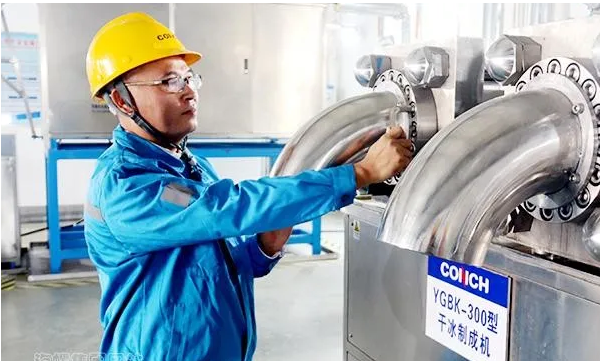在項目產(chǎn)能逐步提升后,王文勝便積極謀劃二氧化碳產(chǎn)品轉(zhuǎn)化,進(jìn)行食品級二氧化碳取證和干冰市場調(diào)研,參與擬定干冰生產(chǎn)線技術(shù)方案、立項報告。2020年1月17日,干冰項目一期年產(chǎn)3000噸生產(chǎn)線建成并投入試運行,2020年3月30日,首車“海螺牌”干冰上市銷售?!?br />