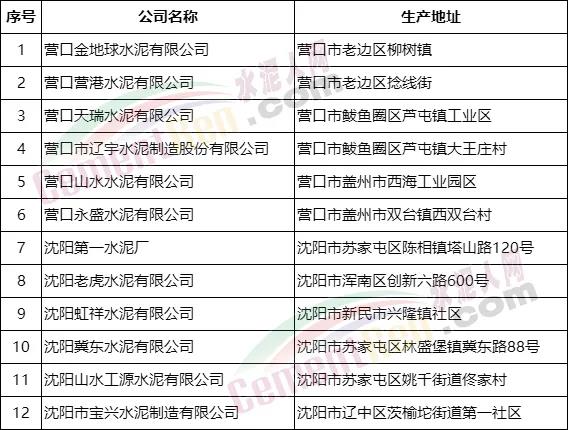 遼寧營(yíng)口、沈陽兩市水泥企業(yè)名單