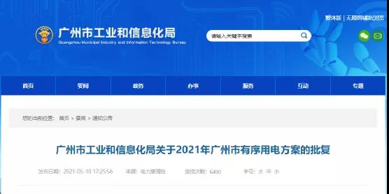 廣州市工業(yè)和信息化局5月10日批復(fù)的《2021年廣州市有序用電方案》顯示,鑒于2021年全省電力供應(yīng)偏緊,疊加夏季用電需求高峰期及枯水期,屆時(shí)廣州電網(wǎng)或?qū)⒊霈F(xiàn)電力供應(yīng)緊張甚至短缺局面,為此,頒布有關(guān)有序用電,工業(yè)錯(cuò)峰限電具體舉措,有效期1年。