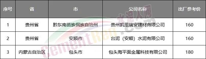 據(jù)水泥人網(wǎng)信息中心重點(diǎn)監(jiān)控的500多家企業(yè)PO42.5散裝水泥報(bào)價(jià)信息來看,除上述臺(tái)泥水泥報(bào)價(jià)160元/噸,區(qū)域內(nèi)其他企業(yè)暫未調(diào)價(jià)。而一直以最低價(jià)銷售的內(nèi)蒙古包頭海平面水泥,目前報(bào)價(jià)依然在180元/噸,區(qū)域內(nèi)冀東水泥報(bào)價(jià)240元/噸。同時(shí)200元/噸以下的報(bào)價(jià)也僅為個(gè)別企業(yè),不代表整個(gè)區(qū)域價(jià)格。