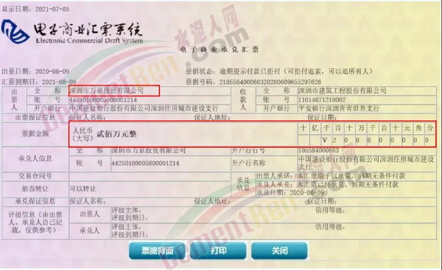 2021年6月9日,深圳市建筑工程股份有限公司200萬(wàn)元商業(yè)承兌匯票逾期未收到款項(xiàng)。