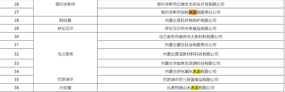 7月16日,內(nèi)蒙古自治區(qū)公布了本省2021年(第二批)綠色制造示范名單, 經(jīng)申報單位自評價、第三方機構評價、盟市初審推薦、自治區(qū)組織專家組審核、網(wǎng)上公示等環(huán)節(jié),最終確定2021年(第二批)自治區(qū)級綠色制造示范名單,其中,綠色工廠36家、綠色設計產(chǎn)品5個、綠色園區(qū)4家以及綠色供應鏈2家(詳見附件)。其中鄂爾多斯市雙嶺水泥有限責任公司、內(nèi)蒙古伊東冀東水泥有限公司、扎賚特旗山水水泥有限公司、內(nèi)蒙古億利冀東水泥有限責任公司這四家水泥企業(yè)上榜,現(xiàn)予公布,并提出具體要求如下: