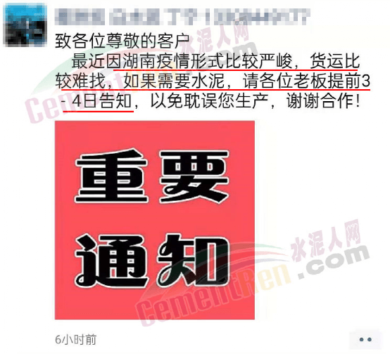 日前,葛洲壩石門特種水泥有限公司通知,最近因湖南疫情形勢比較嚴(yán)峻,貨運(yùn)比較難找,如果需要水泥,請?zhí)崆?-4日告知,以免耽誤生產(chǎn)。