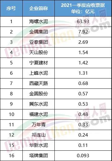 海螺水泥2021年1季度應(yīng)收票據(jù)及應(yīng)收賬款合計74.13億,其中應(yīng)收票據(jù)達到63.93億元。