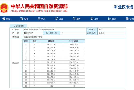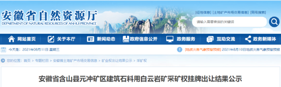 6月23日馬鞍山南方材料有限公司以70500萬元的價格競得了含山縣元沖礦區(qū)建筑石料用白云巖礦采礦權(quán)。