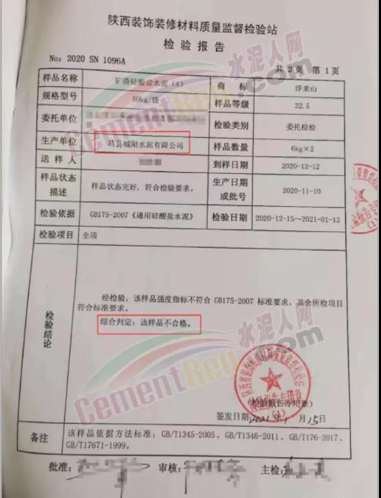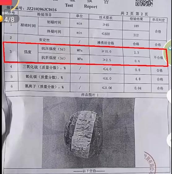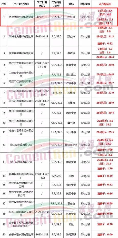 20批次水泥質(zhì)量不合格