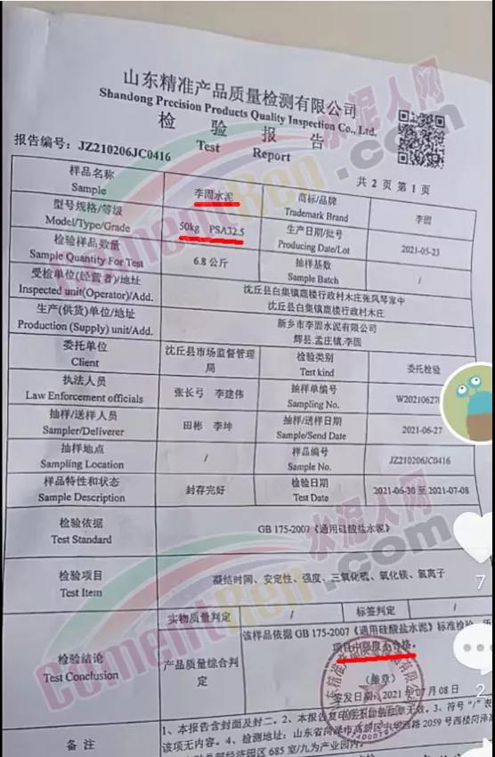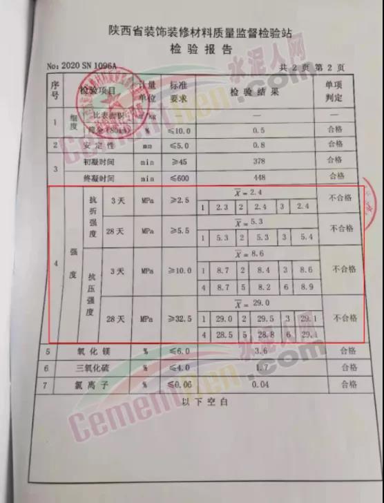 經(jīng)檢測,共檢出不合格水泥20批次,不合格率高達(dá)23.5%。其中抗壓、抗折強度不合格13個批次,氯離子含量超標(biāo)不合格10個批次。在檢出的不合格水泥中,部分批次28天抗折強度僅為4.3MPa;28天抗壓強度也只有20.6MPa;氯離子達(dá)到了1.70,超出國家標(biāo)準(zhǔn)28倍。以莒縣城陽水泥有限公司P.S.A32.5水泥為例,抽檢結(jié)果顯示3天強度、28天強度均不達(dá)標(biāo)。