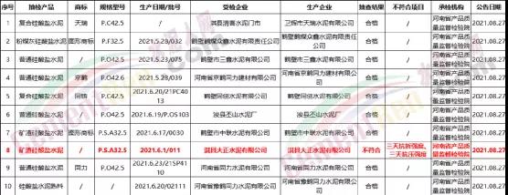 河南省鶴壁市市場監(jiān)督管理局發(fā)布2021年上半年產(chǎn)品質(zhì)監(jiān)督抽查結(jié)果顯示,淇縣大正水泥有限公司礦渣硅酸鹽水泥P.S.A32.5一個批次不合格,不合格項目為三天抗折強度、三天抗壓強度。