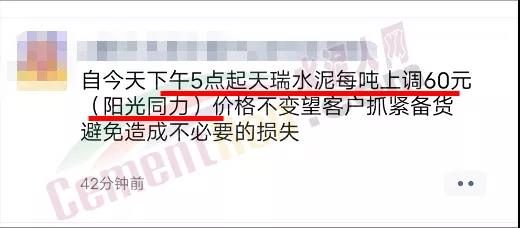 水泥人網(wǎng)通訊員消息:9月22日下午河南區(qū)域主要品牌企業(yè)陸續(xù)通知,下午17時(shí)起,所有品種水泥價(jià)格上調(diào)60元/噸。個(gè)別水泥企業(yè)還有跟漲上一輪調(diào)價(jià)20-30元/噸,新一輪漲價(jià)60元/噸已經(jīng)來(lái)了!