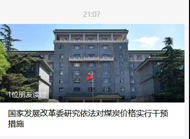 19日21:07分,《國家發(fā)展改革委研究依法對(duì)煤炭?jī)r(jià)格實(shí)行干預(yù)措施》提到發(fā)改委將研究依法對(duì)煤炭?jī)r(jià)格實(shí)行干預(yù)措施,促進(jìn)煤炭?jī)r(jià)格回歸合理區(qū)間。