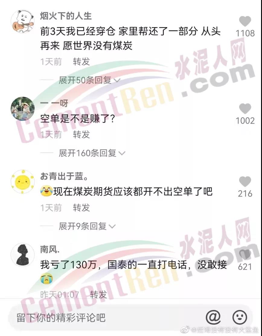 與此同時,社交平臺眾多投資者紛紛訴苦,表示煤炭期貨腰斬只要幾天時間,爆倉的人卻不計其數(shù)。