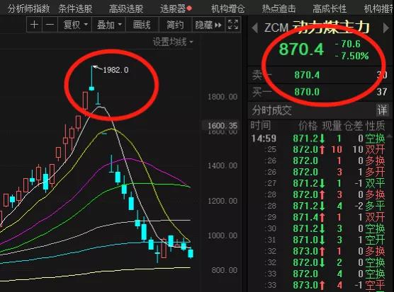 在國家各部門的共同努力之下,煤炭?jī)r(jià)格一改暴漲的勢(shì)頭,開始大幅度下滑。動(dòng)力煤主力期貨更是從最高點(diǎn)1982暴跌至870.4,下滑56%。