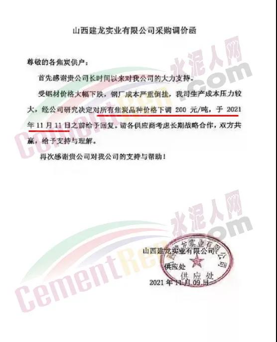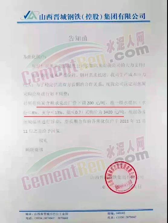 山西晉城鋼鐵控股集團(tuán)有限公司告知函稱,由于鋼材成本嚴(yán)重倒掛,鋼材需求低迷,企業(yè)生產(chǎn)成本壓力較大。為了穩(wěn)定供需雙方長(zhǎng)期的合作關(guān)系,企業(yè)決定對(duì)焦炭采購價(jià)格進(jìn)行調(diào)整。對(duì)所有焦炭含稅承兌出廠價(jià)下調(diào)200元/噸。