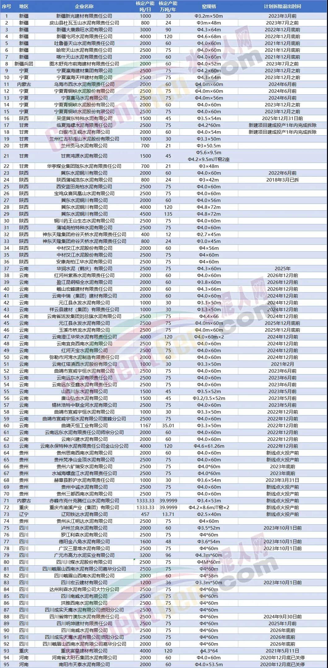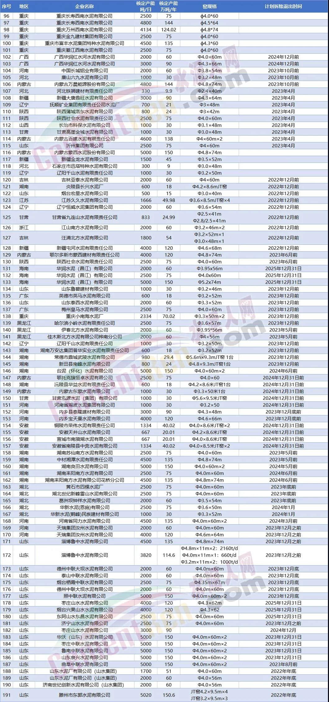 近年來在政策面的加嚴(yán),雙碳政策的引導(dǎo)下,產(chǎn)能置換退出項(xiàng)目從最開始退出傳統(tǒng)的JT窯和2500t/d以下熟料生產(chǎn)線,到現(xiàn)在有多條2500-4000t/d生產(chǎn)線出現(xiàn)在即將退出清單中。同時(shí)也有多個(gè)等量置換技改遷建項(xiàng)目提上日程,所退出的單線產(chǎn)能規(guī)模相對較大。