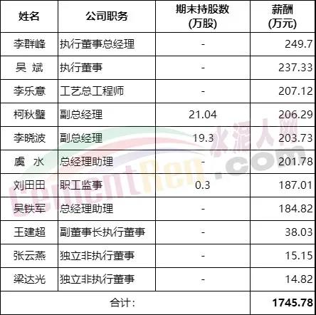 與貴州茅臺齊名的“水泥茅”海螺水泥2020年高管年薪從14.82萬元~249.7萬元不等。12位高管年薪合計1745.78萬元,平均158.71萬元/年。