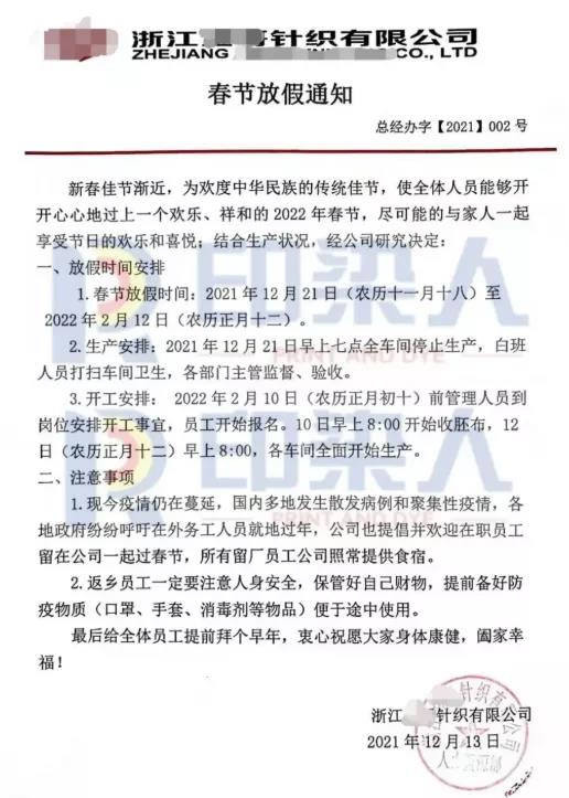 寧波某企業(yè)負(fù)責(zé)人表示,不是工廠不愿意開(kāi)工,就像現(xiàn)在浙江寧波地區(qū)疫情乍現(xiàn),工廠根本就沒(méi)辦法繼續(xù)生產(chǎn),甲方那邊也不可能提供訂單。與其讓大量的工人在工廠里無(wú)事可做,倒不如提前給他們放假,也算是讓他們盡快回家團(tuán)聚了。