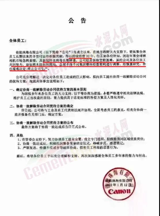 1月13日,佳能公司發(fā)出公告珠海公司因疫情原因關(guān)閉工廠終止生產(chǎn)。經(jīng)向珠海高新區(qū)求證,確認(rèn)在珠海發(fā)展32年的佳能珠海工廠已停產(chǎn)。