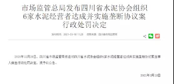 從2021年初開(kāi)始,國(guó)家就加大了反壟斷的力度,先后處罰了山東、四川、陜西多個(gè)區(qū)域水泥行業(yè)企業(yè)和相關(guān)行業(yè)協(xié)會(huì)組織。