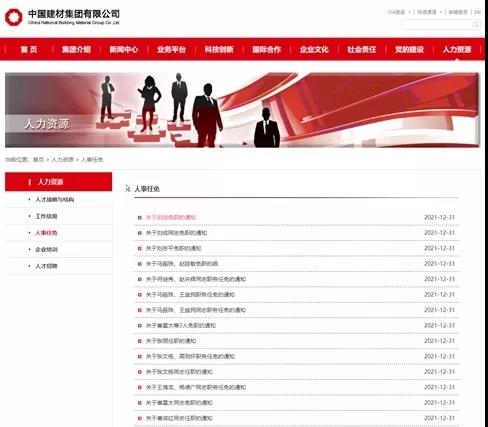 2021年12月29日-31日期間中國(guó)建材集團(tuán)官網(wǎng)發(fā)布了20多條高管任免通知。其中包括水泥板塊多位高管的任免。