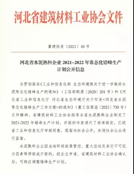 截止2021底共有26個區(qū)域發(fā)布了常態(tài)化錯峰生產(chǎn)計劃,其中基準停產(chǎn)天數(shù)最長達180天。河北金隅鼎鑫水泥有限公司2000t/d生產(chǎn)線2022年非采暖季錯峰30天,采暖季錯峰260天,合計停產(chǎn)天數(shù)達290天,為各區(qū)域停產(chǎn)天數(shù)最長的水泥企業(yè)。