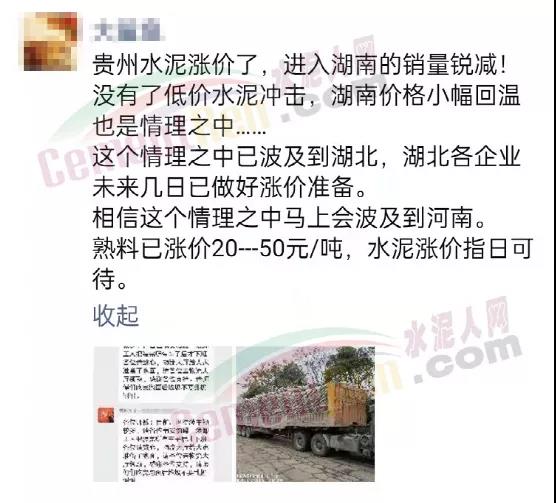 水泥人網(wǎng)通訊員消息,近幾日多區(qū)域水泥企業(yè)發(fā)布調(diào)價通知,上調(diào)水泥報價。有經(jīng)銷商表示,貴州水泥漲價了,進入湖南的銷量銳減!沒有了低價水泥沖擊,湖南價格小幅回溫也是情理之中……這個情理之中已波及到湖北,湖北各企業(yè)未來幾日已做好漲價準備。相信這個情理之中馬上會波及到河南。熟料已漲價20-50元/噸,水泥漲價指日可待。