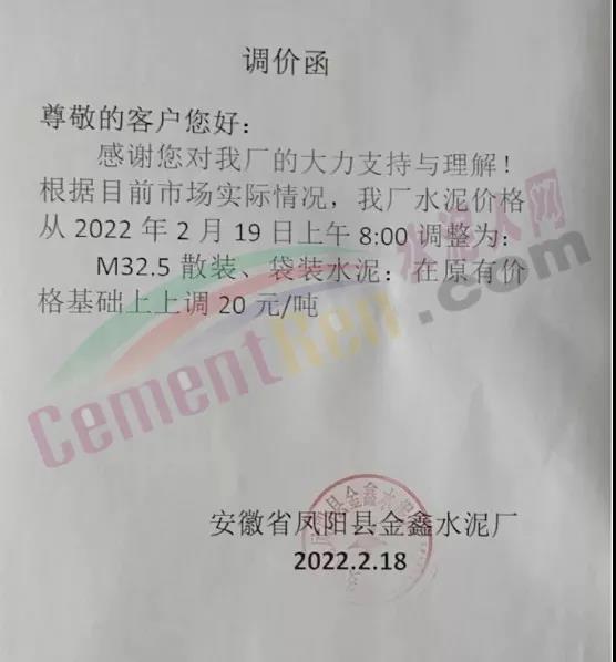 2月17前后,內(nèi)蒙古呼和浩特、烏蘭察布主要品牌通知上調(diào)水泥價格20-30元/噸。