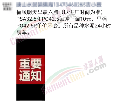 四川綿竹進鑫化建有限責任公司通知稱從2022年3月3日凌晨4時起針對德陽、綿陽區(qū)域,“南綿”牌各品種袋裝水泥單價在原基礎(chǔ)上上調(diào)30元/噸。