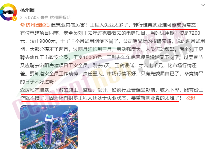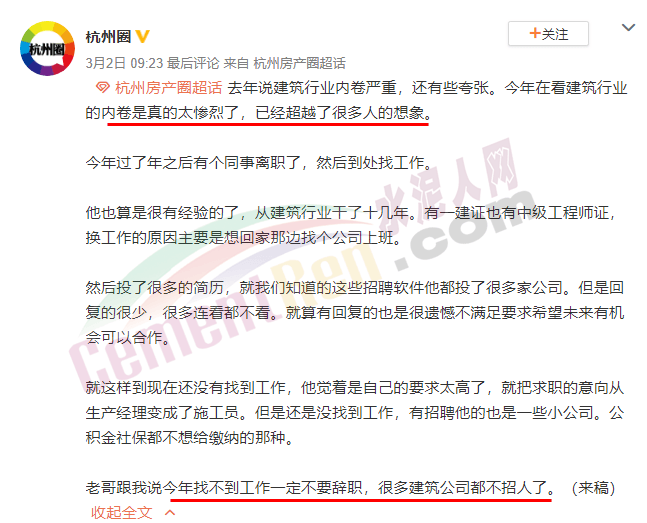 去年說建筑行業(yè)內(nèi)卷嚴(yán)重,還有些夸張。今年在看建筑行業(yè)的內(nèi)卷是真的太慘烈了,已經(jīng)超越了很多人的想象。今年過了年之后有個同事離職了,然后到處找工作。