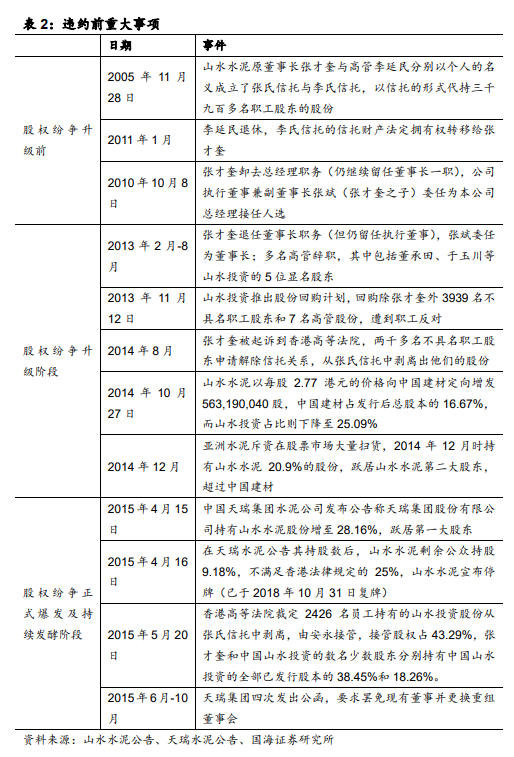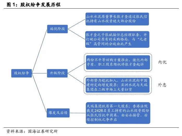 回顧山水水泥的股權(quán)紛爭過程,大致可以分為端倪、升級、爆發(fā)及后續(xù)發(fā)酵三個階段。