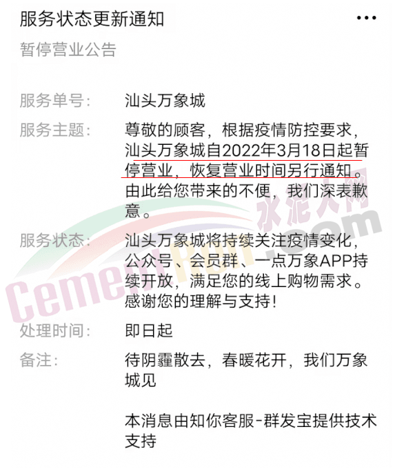 廣東深圳疫情防控指揮部發(fā)布通告稱,3月14日至20日,非城市保障型企業(yè)停止運(yùn)營或居家辦公,停止一切非必要流動(dòng)、活動(dòng),全市全員進(jìn)行三輪核酸檢測(cè)。廣東東莞全面升級(jí)防控措施,發(fā)生本土疫情的鎮(zhèn)街(園區(qū)),所有企業(yè)一律停止生產(chǎn)活動(dòng);未發(fā)生本土疫情的,實(shí)行封閉式管理的產(chǎn)業(yè)園區(qū),在嚴(yán)格落實(shí)各項(xiàng)防疫措施的前提下維持基本生產(chǎn)。深莞兩市,除保障城市運(yùn)行及供港物資貨運(yùn)的交通外,全市公交、地鐵停運(yùn)。根據(jù)通告指示,許多倉儲(chǔ)物流企業(yè)暫停運(yùn)營。深圳市金運(yùn)達(dá)國際物流表示,自2022年3月14日起,深圳所有倉點(diǎn)暫停辦理進(jìn)出倉業(yè)務(wù);城市國際物流發(fā)布通知稱,東莞集運(yùn)倉庫自2022年3月16日起,工廠停產(chǎn)停工,在此期間,倉庫暫停收貨、裝箱發(fā)貨。汕頭萬象城通知暫停營業(yè),恢復(fù)營業(yè)時(shí)間另行通知。南澳大橋臨時(shí)交通管制……