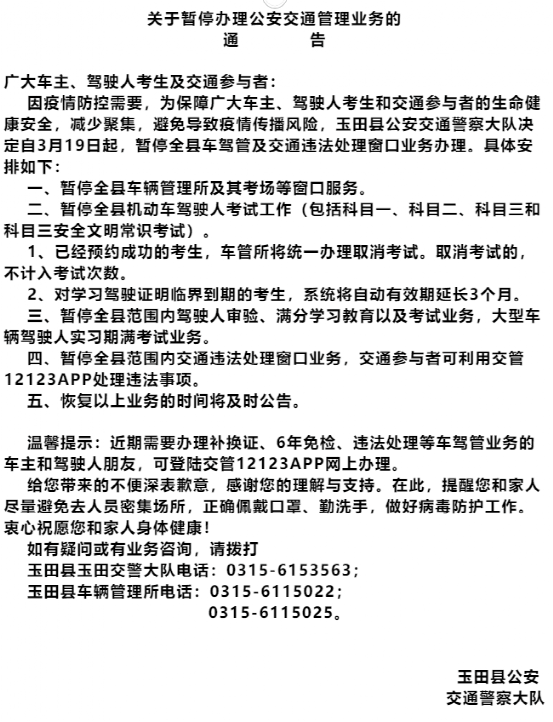 尉氏縣所有省際班線、市際班線、尉氏縣至鄭州線路車輛(鄭州至尉氏縣線路車輛)、市內(nèi)班線(尉氏至開封、尉氏至通許)和縣內(nèi)班線、全縣所有公交車輛、出租(巡游)車輛暫時(shí)停運(yùn),恢復(fù)時(shí)間另行通知。