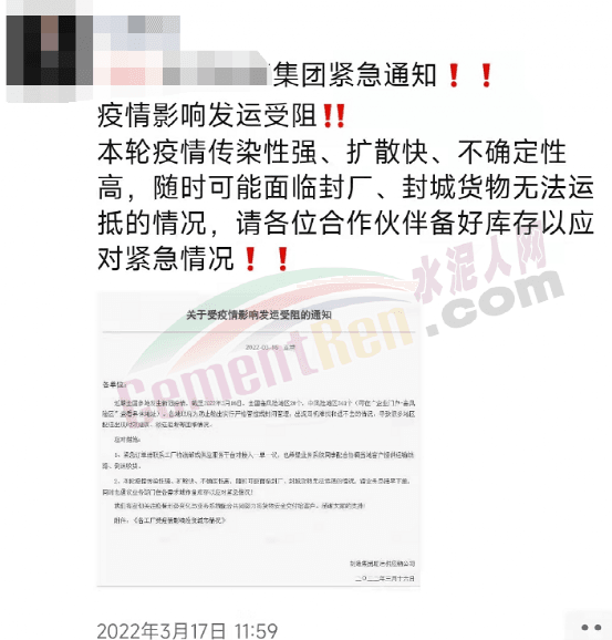 無論是封城封路,還是停工停運(yùn),從嚴(yán)防控本質(zhì)上共同的目的都是盡快遏制疫情擴(kuò)散蔓延勢(shì)頭,用最短時(shí)間實(shí)現(xiàn)社會(huì)面清零。在全球經(jīng)歷新冠疫情第四波流行高峰,國內(nèi)疫情也處于指數(shù)級(jí)上升初期的當(dāng)下,預(yù)計(jì)會(huì)有越來越多的地區(qū)加入到從嚴(yán)管控的隊(duì)伍中。水泥人網(wǎng)在這里也提醒水泥生產(chǎn)及上下游企業(yè),做好疫情防控、守牢“安全關(guān)”的同時(shí),也要隨時(shí)關(guān)注行情走勢(shì)和產(chǎn)業(yè)鏈動(dòng)態(tài),為2022年后三個(gè)季度的生產(chǎn)、采購、銷售等提前做好規(guī)劃和部署。