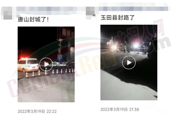 與時(shí)同時(shí),有水泥經(jīng)銷商發(fā)消息稱,“唐山封城了”、“玉田封路了”……