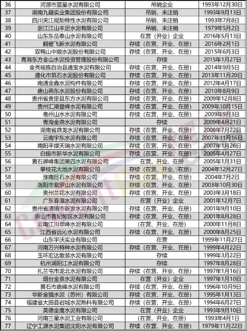 據(jù)水泥人網(wǎng)不完全統(tǒng)計,截止目前被列入嚴(yán)重違法失信企業(yè)名單中包括70家水泥行業(yè)企業(yè),而被列入經(jīng)營異常的水泥廠也達(dá)到77家,被行政處罰的達(dá)99家,共計246家水泥廠。且有部分企業(yè)連續(xù)多年因被列入經(jīng)營異常名錄屆滿3年仍未履行相關(guān)義務(wù)而持續(xù)被列入嚴(yán)重違法失信企業(yè)名單。