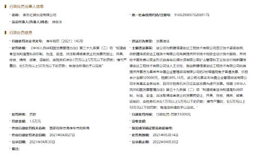庫車紅獅水泥有限公司因發(fā)票違法被國家稅務(wù)總局庫車市稅務(wù)局于2021年4月27日處罰1500元。主要違法事實為“虛開發(fā)票”。