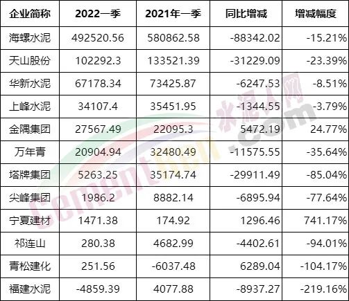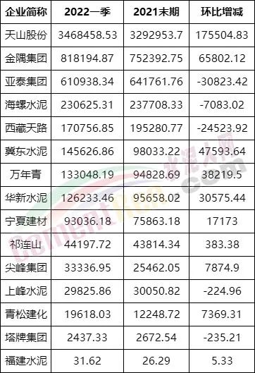對比2021年各上市企業(yè)年報可見,海螺水泥、天山股份、華新水泥等企業(yè)利潤處于持續(xù)下滑中,年報中凈利潤增長的部分企業(yè)在2022年第一季度也出現(xiàn)了業(yè)績下滑。