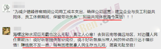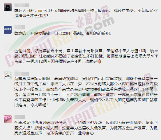 云南區(qū)域海螺水泥則要求員工“集中休假,只發(fā)低保工資且要求隨時待命,不允許外出打工。”在海螺水泥是首次出現。據員工反饋600多元的低保工資不能保證“養(yǎng)家糊口”。