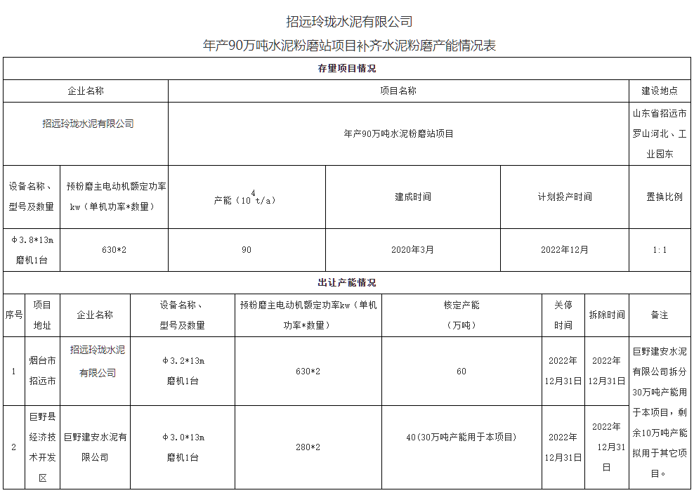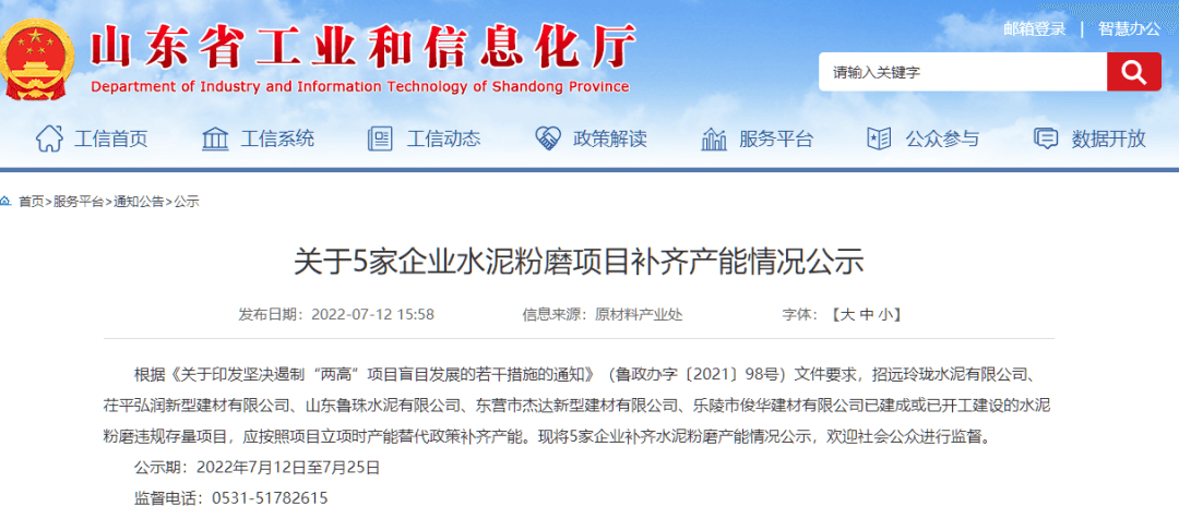 日前,山東工信廳發(fā)布《關(guān)于5家企業(yè)水泥粉磨項目補齊產(chǎn)能情況公示》稱,根據(jù)《關(guān)于印發(fā)堅決遏制“兩高”項目盲目發(fā)展的若干措施的通知》(魯政辦字〔2021〕98號)文件要求,招遠(yuǎn)玲瓏水泥有限公司、茌平弘潤新型建材有限公司、山東魯珠水泥有限公司、東營市杰達(dá)新型建材有限公司、樂陵市俊華建材有限公司已建成或已開工建設(shè)的水泥粉磨違規(guī)存量項目,應(yīng)按照項目立項時產(chǎn)能替代政策補齊產(chǎn)能。