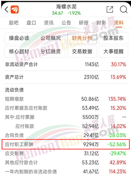 海螺水泥員工薪酬同比下降52%