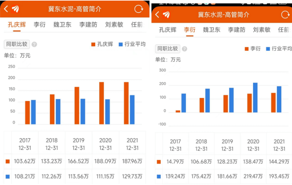 冀東水泥董事長(zhǎng)孔慶輝年薪187.96萬(wàn)元,總經(jīng)理李衍年薪144.29萬(wàn)。董事長(zhǎng)孔慶輝薪資從2020年的188.09萬(wàn)下調(diào)至187.96萬(wàn)。2022年一季度冀東水泥應(yīng)付職工薪酬同比下調(diào)9.06%。
