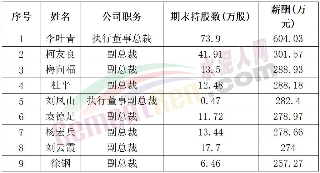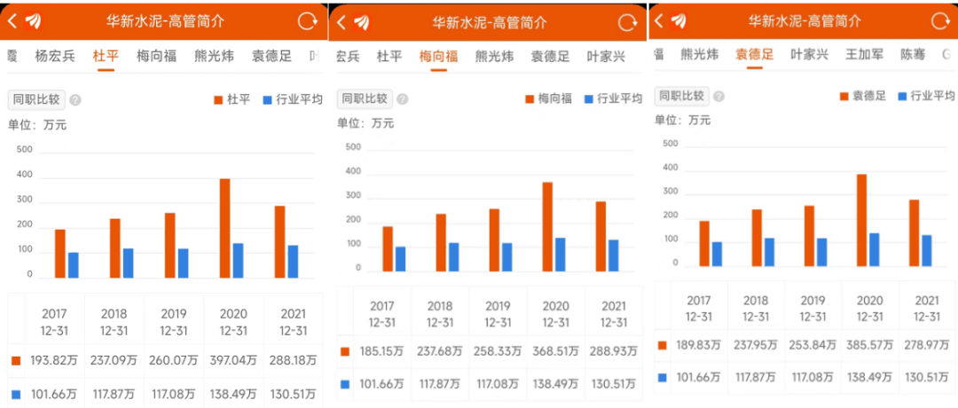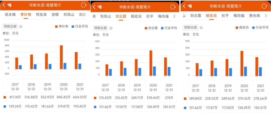 行業(yè)公認(rèn)薪資較高的華新水泥9位高管年薪過(guò)200萬(wàn),但是近兩年內(nèi)薪資均有下調(diào)。總裁李葉青年薪從2020年的845.83萬(wàn),降至604.03萬(wàn),仍為全行業(yè)最高年薪。