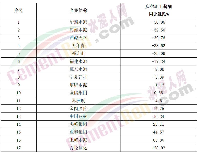 半數(shù)以上水泥公司薪酬同比下跌,華新、海螺跌超50%