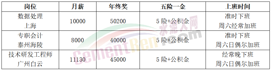 華潤(rùn)水泥員工分享說(shuō):“五險(xiǎn)一金和社會(huì)保險(xiǎn),住房補(bǔ)貼,交通補(bǔ)助,伙食補(bǔ)貼都有,還有中夜班補(bǔ)貼。一個(gè)月可以休息8天,還有過(guò)節(jié)費(fèi),生日卡,年終獎(jiǎng)金,結(jié)婚還有結(jié)婚禮金,公司有年假。”