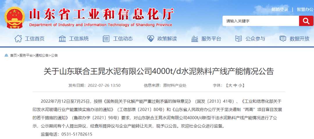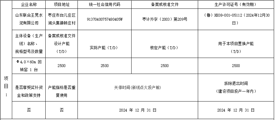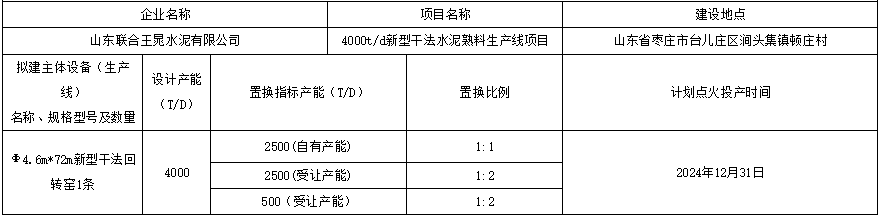 日前,山東工信廳發(fā)布公告稱,按照相關(guān)文件要求,對山東聯(lián)合王晁水泥有限公司4000t/d新型干法水泥熟料產(chǎn)線產(chǎn)能情況進(jìn)行公告。項(xiàng)目通過拆除山東聯(lián)合王晁水泥有限公司自有2500t/d以及龍口市泛林水泥有限公司2500t/d和泰安魯潤水泥有限公司1000t/d熟料生產(chǎn)線新建一條4000t/d熟料生產(chǎn)線,建設(shè)地址位于山東省棗莊市臺兒莊區(qū)澗頭集鎮(zhèn)頓莊村。擬建主體將采用Φ4.6m*72m新型干法回轉(zhuǎn)窯1條。計(jì)劃點(diǎn)火投產(chǎn)時(shí)間為2024年12月31日。