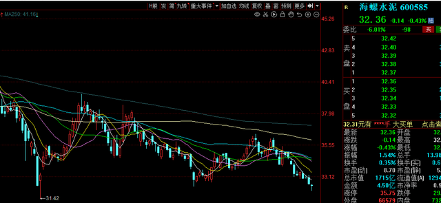 并且,按照前復(fù)權(quán)價(jià)格顯示,海螺水泥的現(xiàn)價(jià)為32.36元,已經(jīng)創(chuàng)下了今年以來的收盤價(jià)新低。