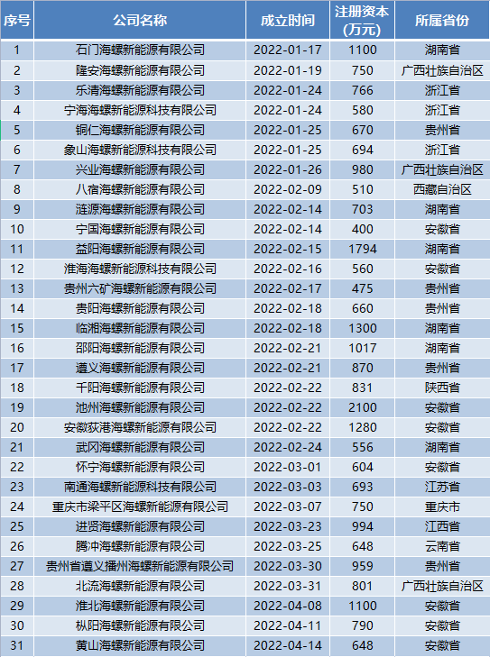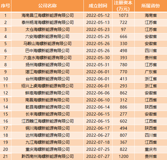 2018年-2021年,海螺新能源獨立出資設立了44家新能源公司。海螺新能源主營業(yè)務包括光伏發(fā)電、風力發(fā)電、儲能系統(tǒng)領域內(nèi)的技術(shù)開發(fā)、技術(shù)服務,電力項目的建設、運營和管理等。
