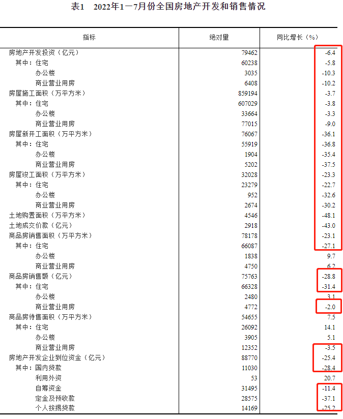 2022年下半年已開啟,全國樓市仍處于艱難尋底中,且下行態(tài)勢嚴(yán)峻。近日國家統(tǒng)計局發(fā)布7月份房地產(chǎn)相關(guān)數(shù)據(jù),所有指標(biāo)全部下跌。