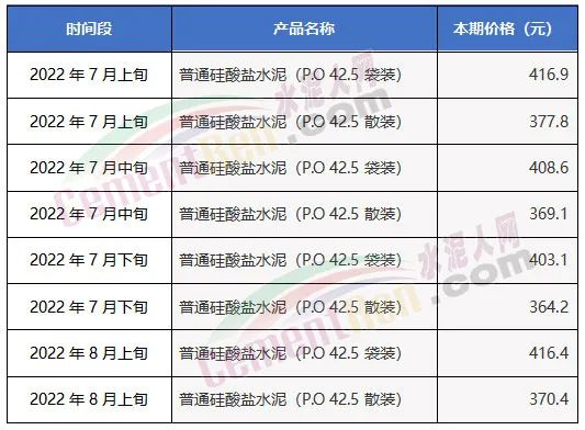 國家統(tǒng)計(jì)局?jǐn)?shù)據(jù)顯示8月上旬水泥價(jià)格P.O42.5散裝水泥報(bào)價(jià)370.4元/噸,包裝水泥報(bào)價(jià)416.4元/噸。環(huán)比7月下旬散裝水泥上漲了6.2元/噸,包裝水泥上漲了13.3元/噸。但是,相比今年1月下旬,前七個(gè)月內(nèi)下跌超100元/噸。