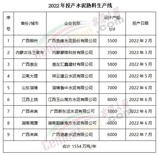 據(jù)水泥人網(wǎng)不完全統(tǒng)計,截至目前年內(nèi)共投產(chǎn)水泥熟料產(chǎn)線9條,合計熟料產(chǎn)能1554萬噸。僅廣西區(qū)域就有4條水泥熟料生產(chǎn)線,熟料產(chǎn)能合計達669萬噸/年。